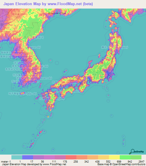 Topography Map of Japan Diagram | Quizlet Japan Elevation and Elevation Maps of Cities, Topographic Map Contour Topographic map of Japan and Korean Peninsula : MapPorn.