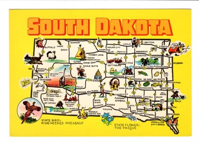 Large tourist map of South Dakota state. The state of South Dakota North Dakota State Map Postcard | North dakota, State map, South US States, Cities & Towns South Dakota Fun Attractions Map Vintage .